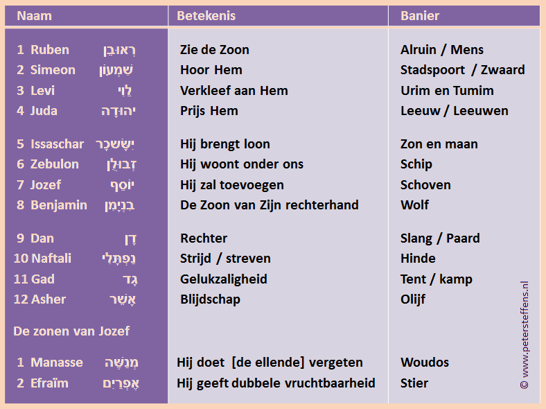 De namen van de stammen wijzen naar de bediening van de Here Jezus.