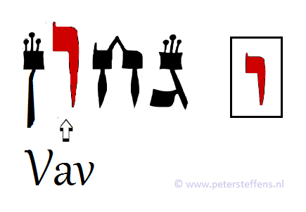 De vav is onder meer een haak. De haken herinneren aan de 50 gouden en 50 koperen haken in het heiligdom;